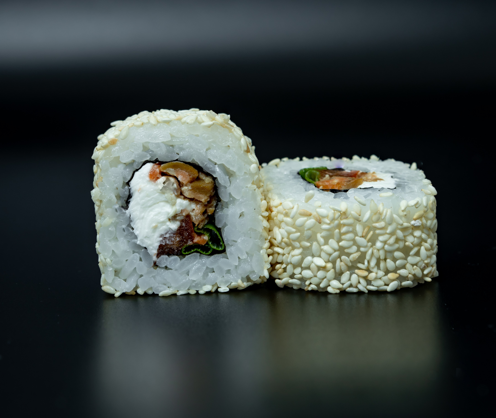 рис нори сыр лосось терияки томат зеленый лук кунжут