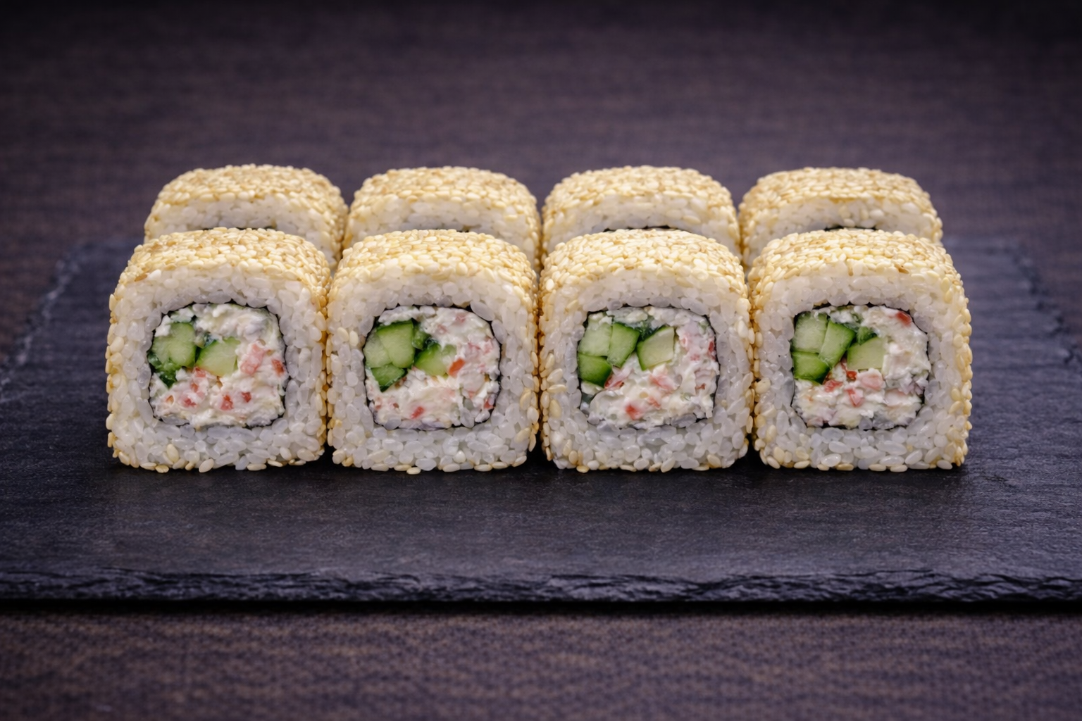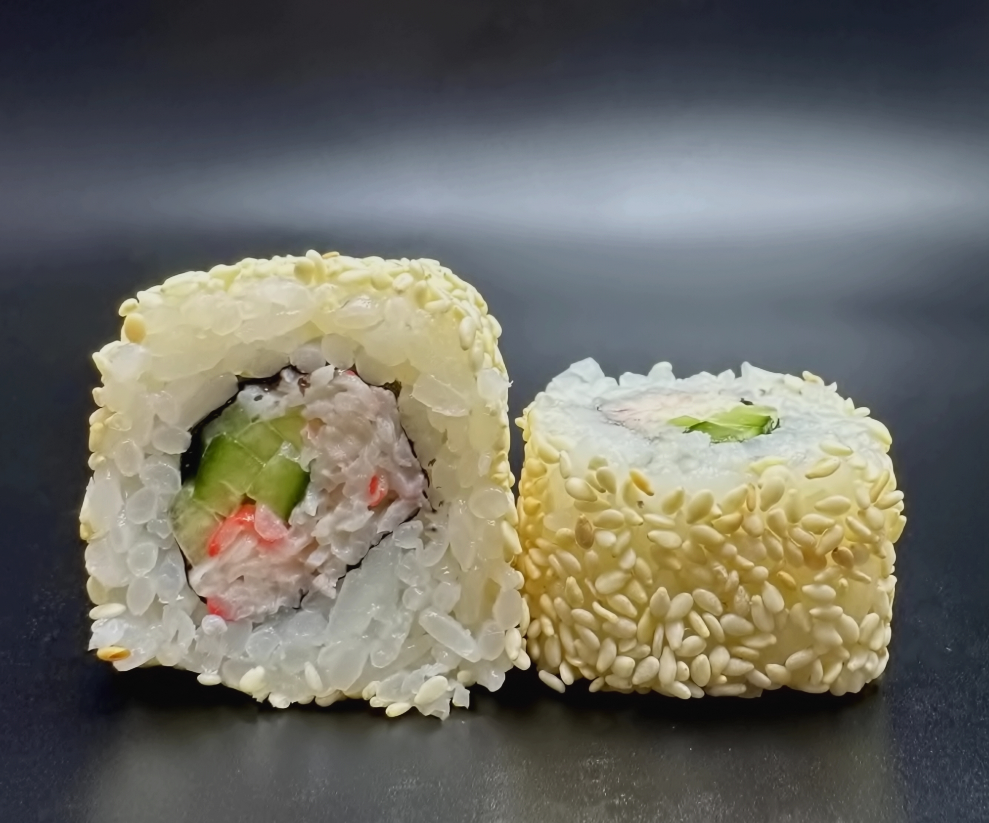 Классический ролл с лёгким вкусом краба и свежестью огурца, в аппетитной кунжутной обсыпке. Отлично подходит к любым сетам.