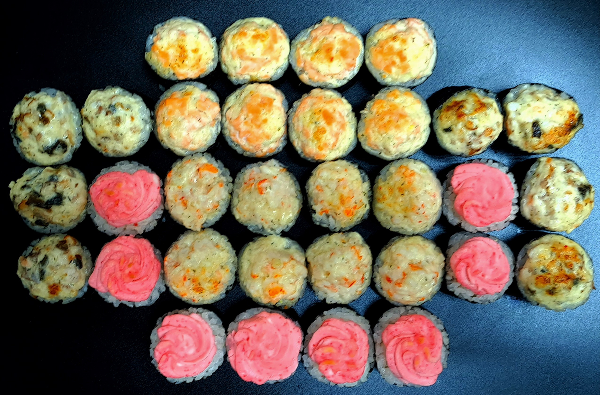 Сэт «Запеченный» — целый килограмм горячих роллов! Четыре хита в одном: Сяке Хот, Унаги Хот, Эби Хот и Лава Хот.